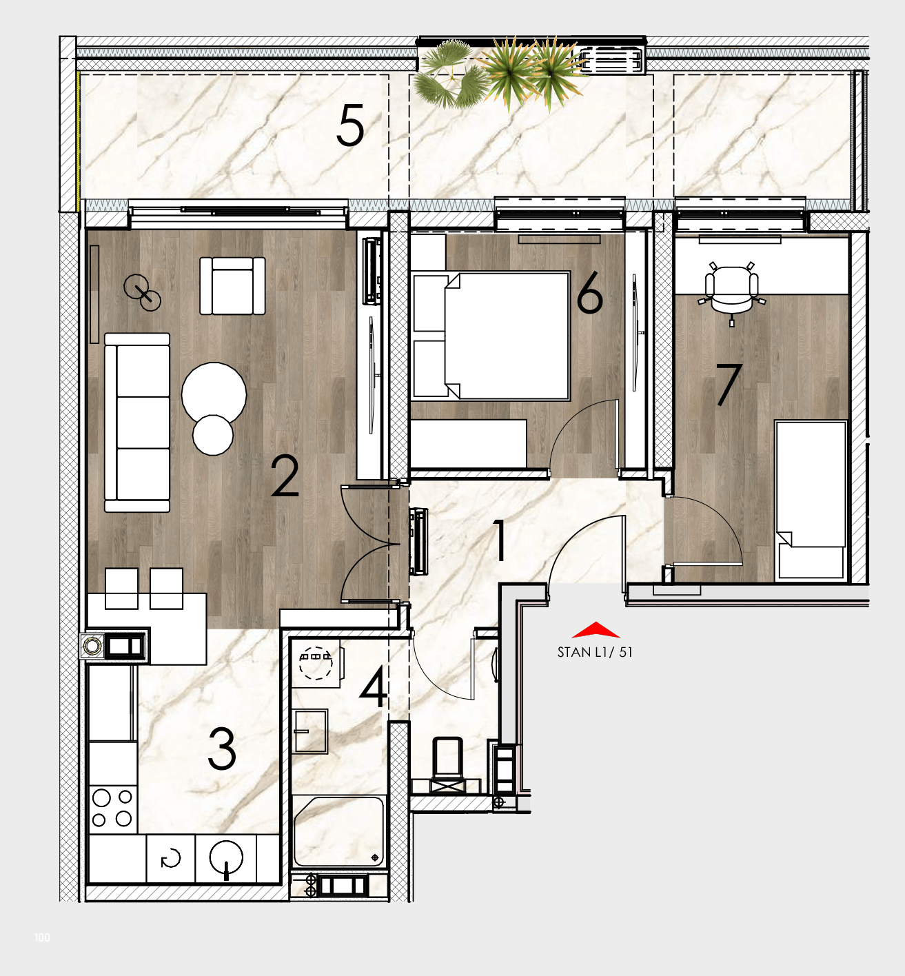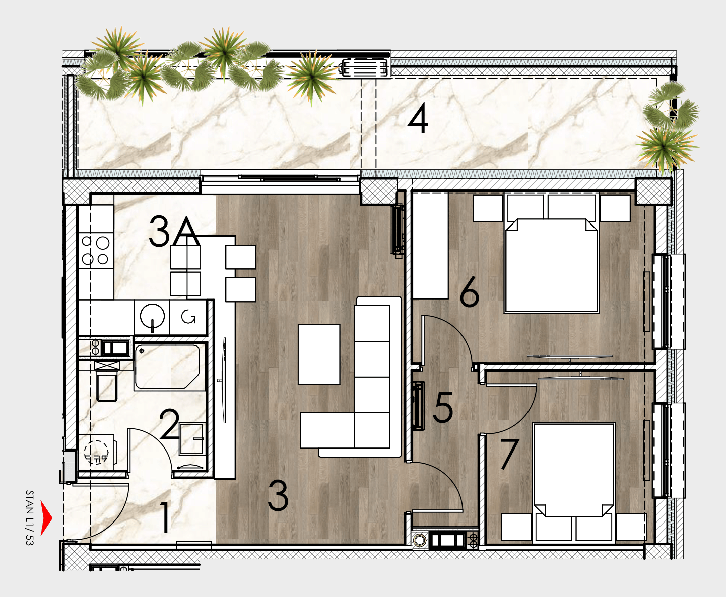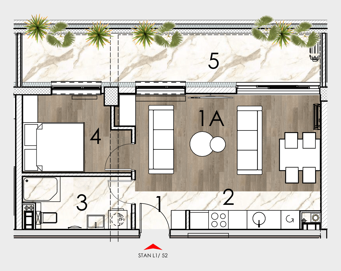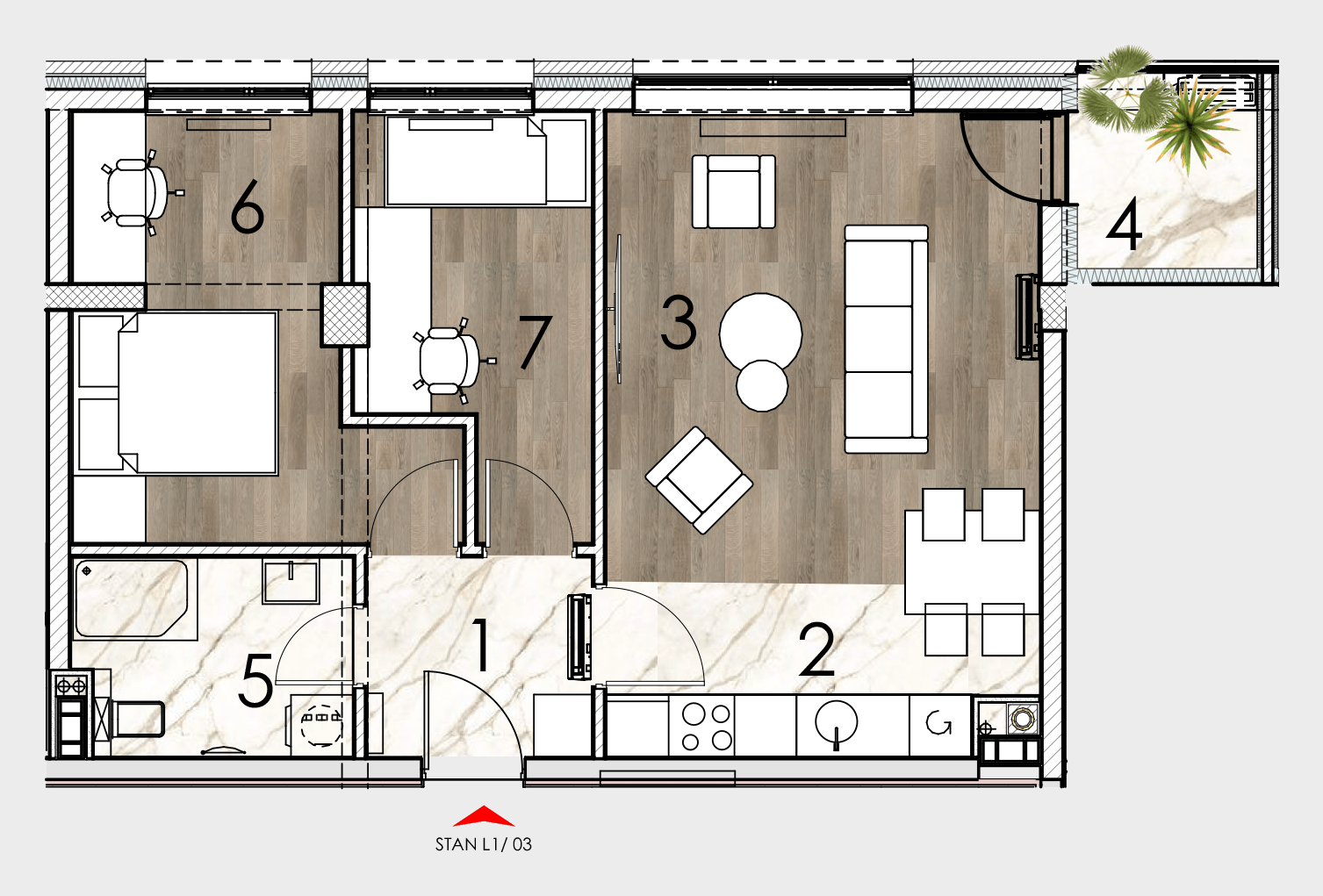 Family nest je višeporodični stambeno-poslovni objekat nepravilne forme u osnovi, sa pristupom sa sjevera iz planiranog ogranka ulice Boška Tošića, površinskim parkingom na parceli i neophodnom infrastrukturom.