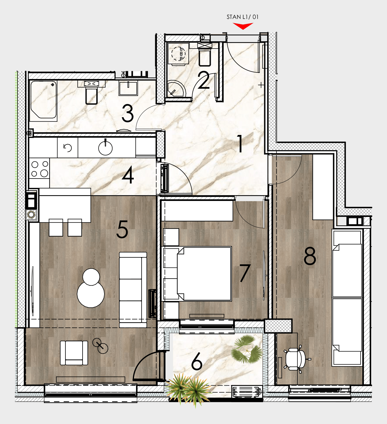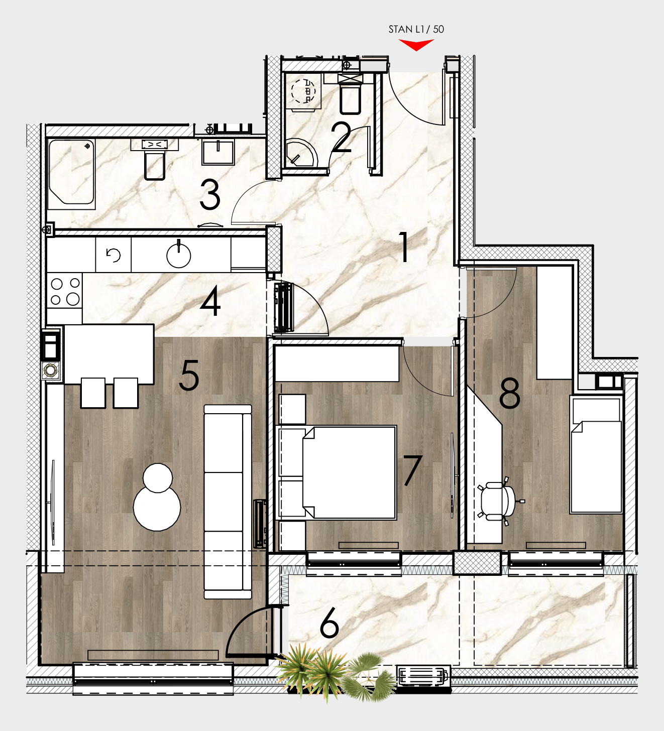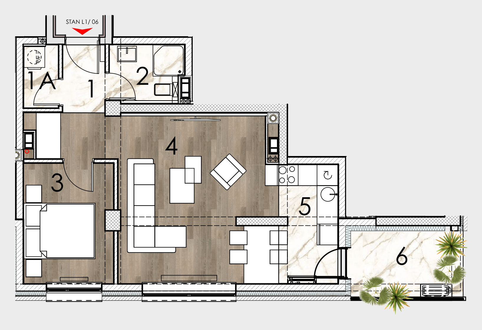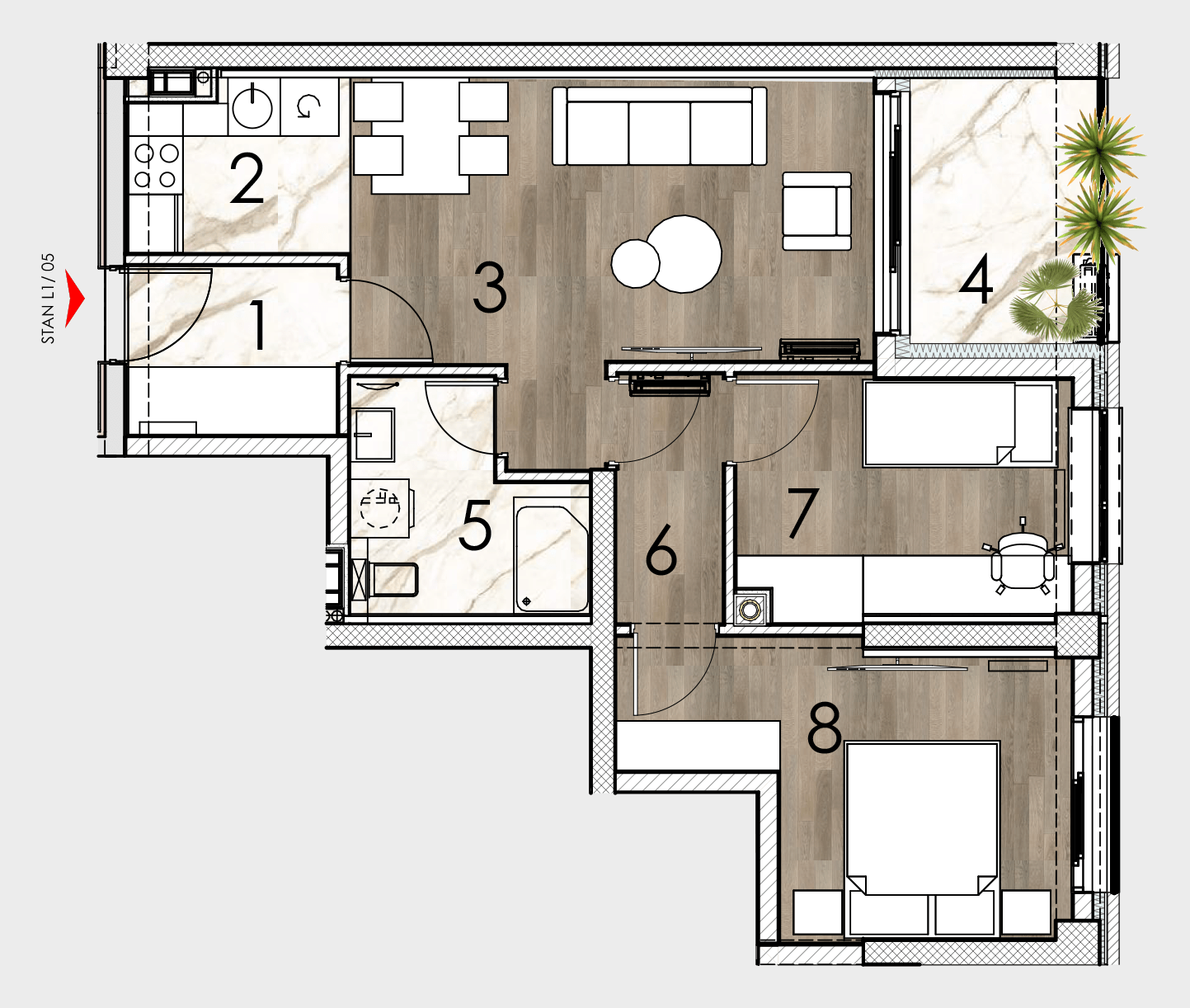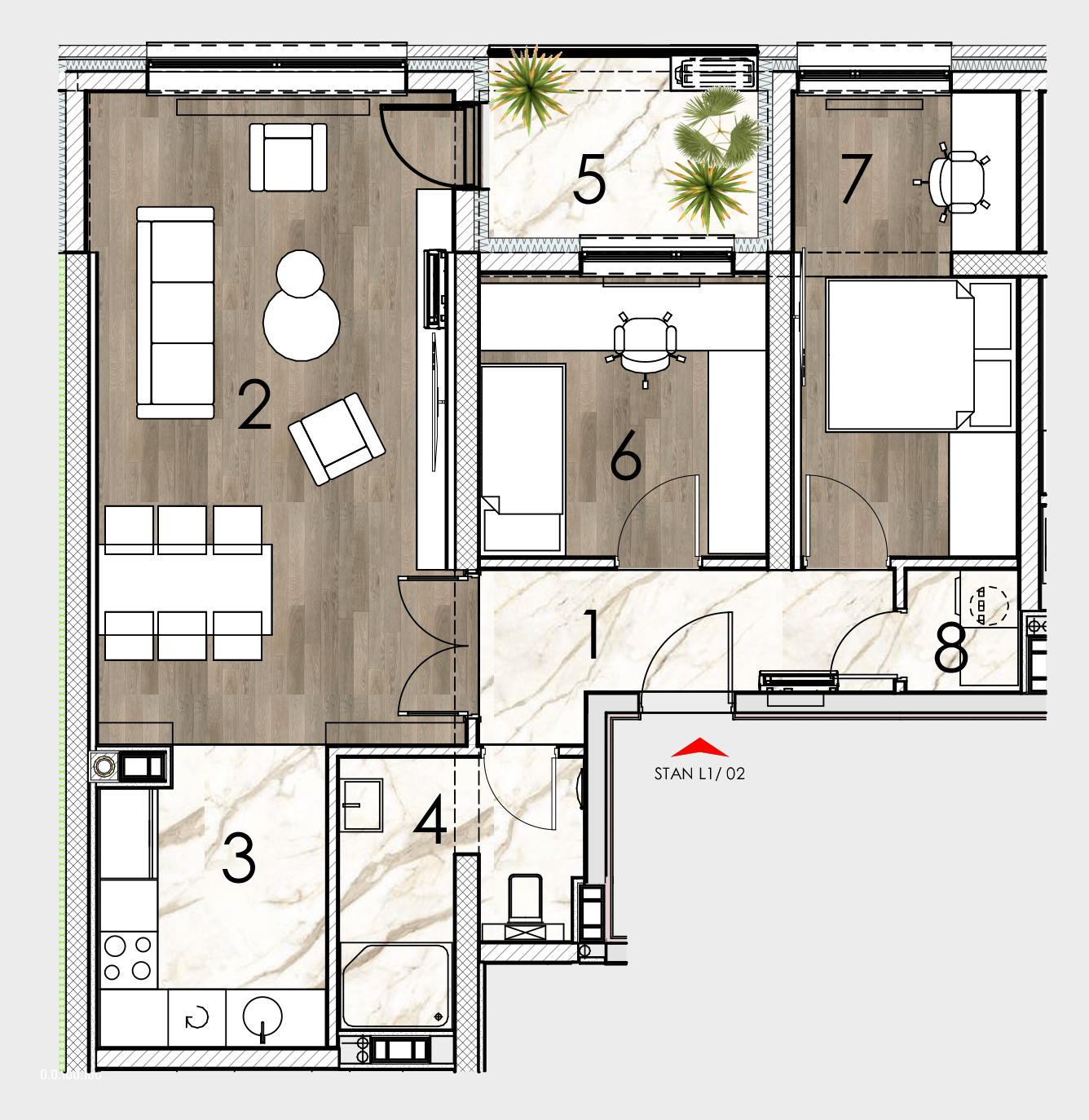 Family nest je višeporodični stambeno-poslovni objekat nepravilne forme u osnovi, sa pristupom sa sjevera iz planiranog ogranka ulice Boška Tošića, površinskim parkingom na parceli i neophodnom infrastrukturom.