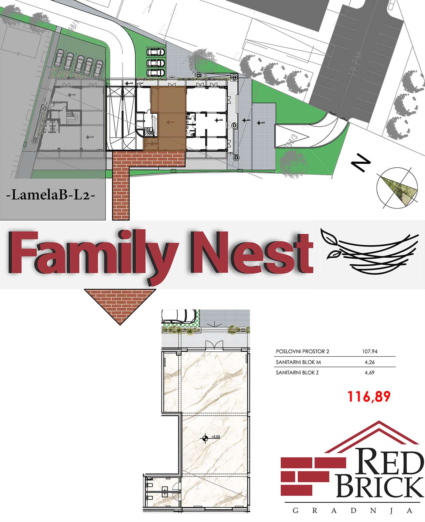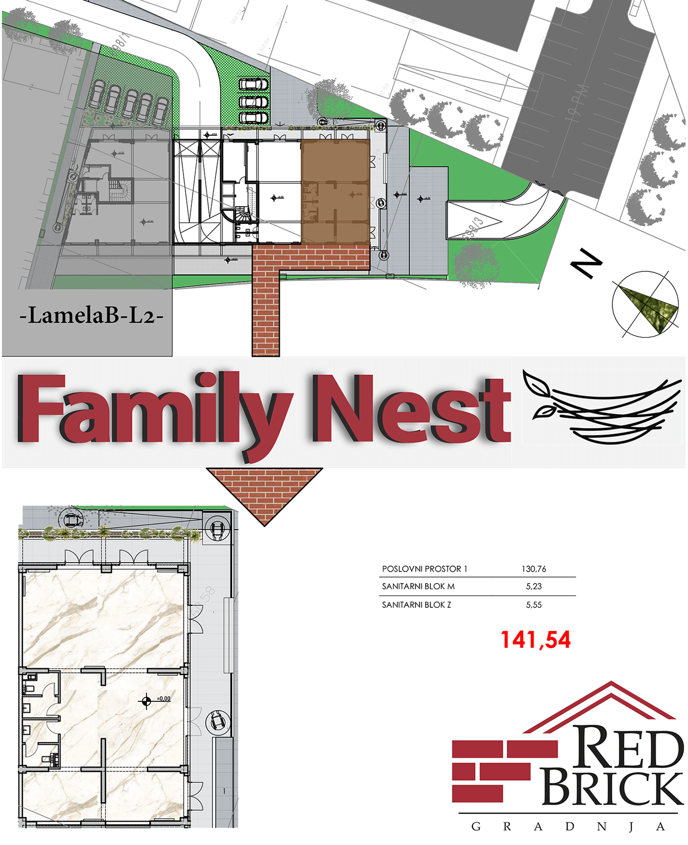 Poslovni prostor u dvije etaže (prizemlje i prvi sprat) površine 538,38㎡ sa arhivom od 85㎡ i 12 parking mjesta.